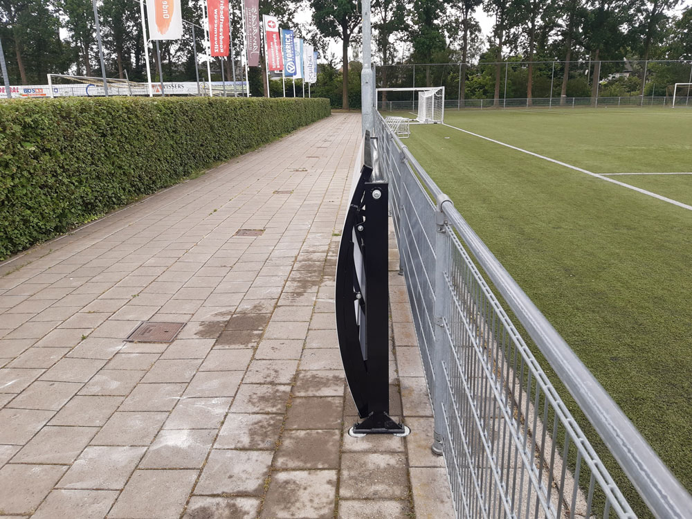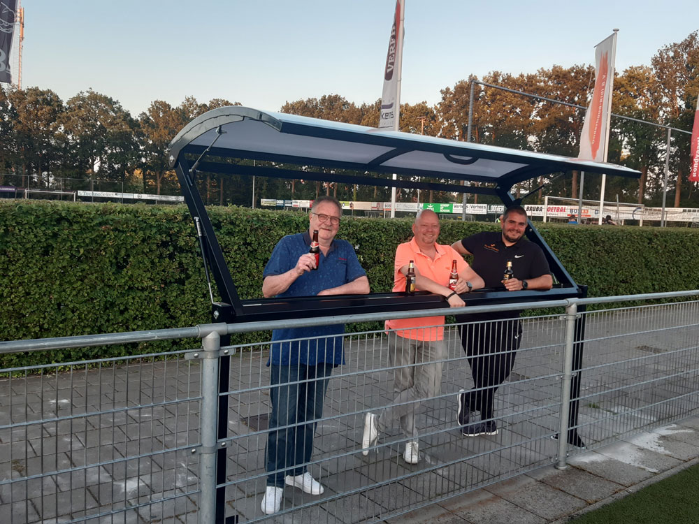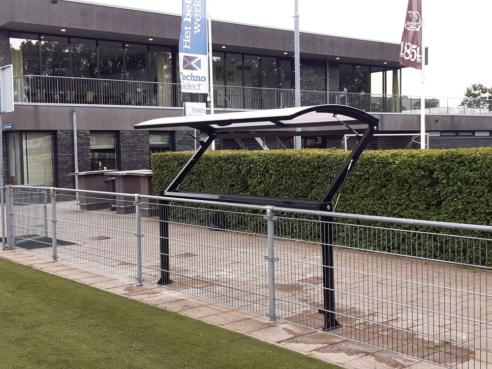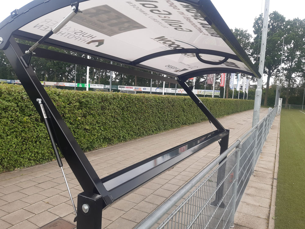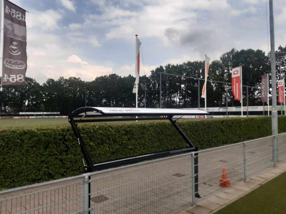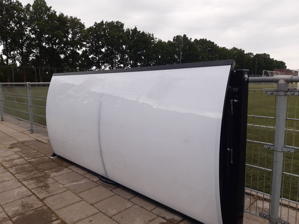 Met 1 simpele handeling verander je het reclamebord langs de sportvelden in een overkapping die bescherming biedt tegen de weersomstandigheden.